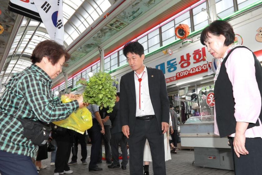 이 의장을 비롯한 의회사무처 직원들이 함께 참여해 제수용품과 지역 농산물을 직접 구매하며 상인들과 소통의 시간을 가졌다.