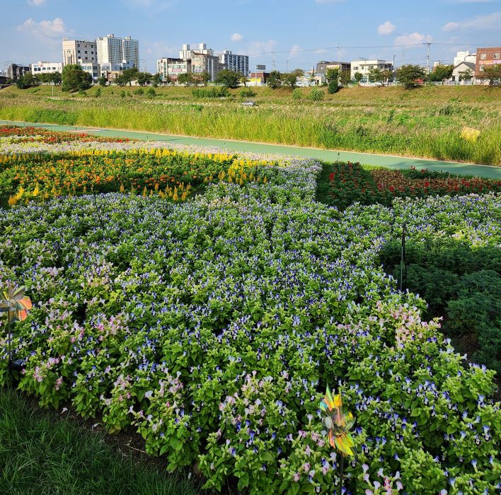 충북 청주시는 무심천 꽃정원에 식재한 가을꽃이 만개했다고 15일 밝혔다. 시가 조성한 꽃정원은 △흥덕대교 일원(6,900㎡) △용평교~방서교 일원(1,000㎡) △롤러스케이트장(2,000㎡) 등 3개소다.