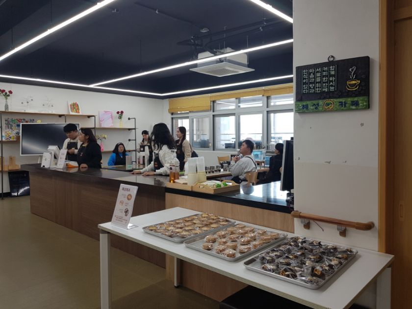 <먹고 가게!>는 혜성카페와 혜성분식, 소세지 부스를 통해 학생들이 직접 만든 커피, 착즙주스, 레몬에이드, 에그타르트, 떡볶이, 어묵탕 등을 판매하며 고객 응대와 계산, 위생 관리 등 실제 직업 현장을 체험하였다.