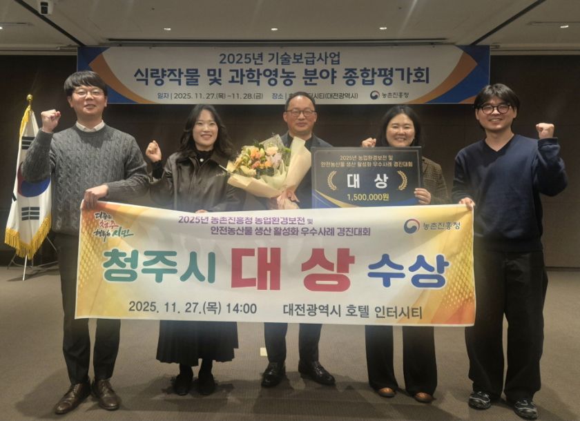 충북 청주시농업기술센터는 농촌진흥청이 주관한 ‘2025년 농업환경보전 및 안전농산물 생산 우수사례 경진대회’(이하 경진대회)에서 대상(전국 1위)을 수상했다고 28일 밝혔다.