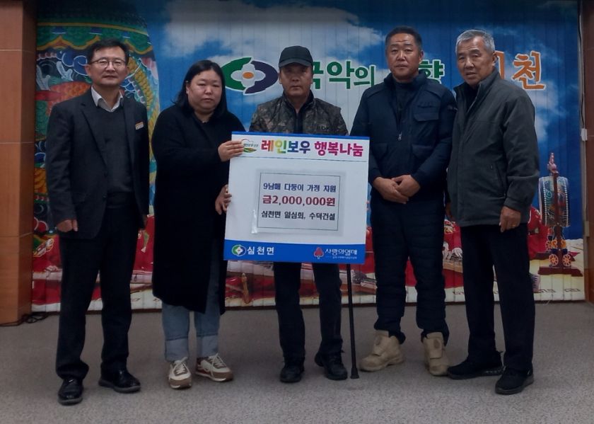 한편, 심천면은 이번 성금을 충북사회복지공동모금회에 지정기탁하여 해당 가족을 지원할 예정이다.