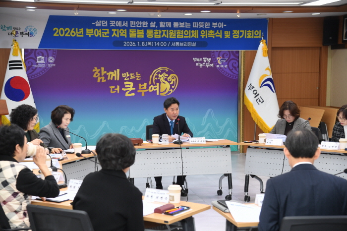 충남 부여군은 지난 8일 군청 서동브리핑실에서 ‘부여군 지역 돌봄 통합지원협의체’ 위원 위촉식 및 정기회의를 개최하고 지역 중심의 통합 돌봄 체계 구축을 위한 본격적인 출발을 알렸다.