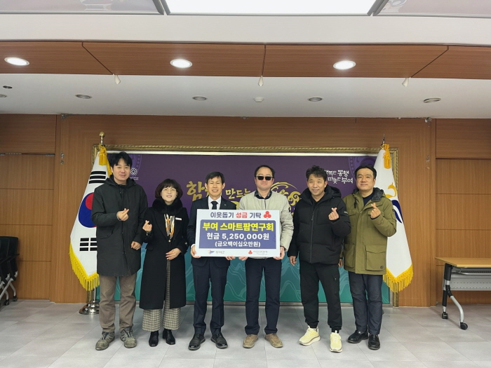 충남 부여 스마트팜연구회(회장 정택준)는 부여군청을 방문해 이웃돕기 성금 525만 원을 기부했다고 10일 밝혔다.