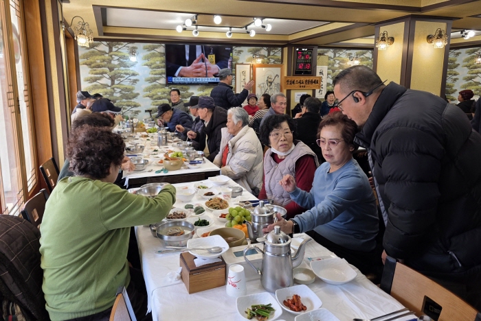 충북 보은군 속리산면 사내2리 김민곤 이장은 지난 10일 노인 공경과 경로효친의 미덕을 되새기고 노인들이 따뜻한 겨울을 보낼 수 있도록 갈비탕 대접 행사를 마련했다.