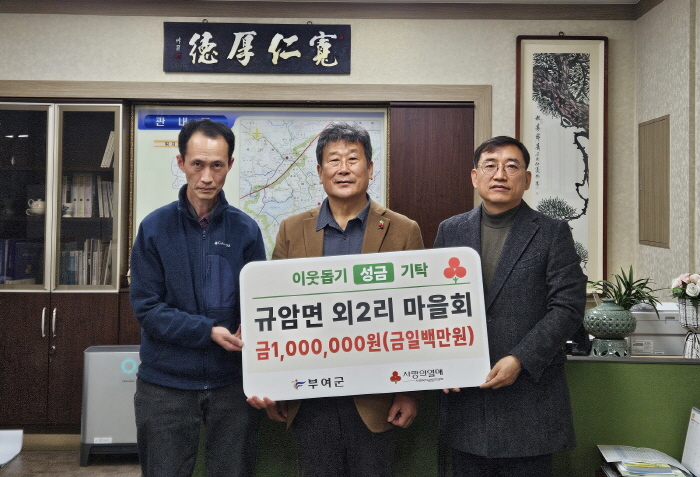 충남 부여군 규암면(면장 구기완)은 외2리 마을 주민들이 관내 어려운 이웃을 돕기 위해 성금 100만 원을 지정 기탁했다고 19일 밝혔다.