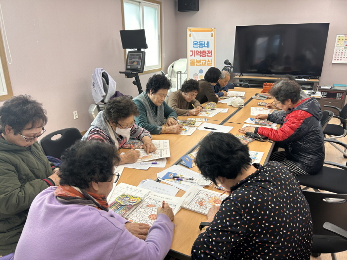 ‘온동네 기억충전 돌봄교실’은 치매안심센터 전담 인력이 보건기관 또는 마을회관으로 직접 찾아가 인지 교재와 교구를 활용해 프로그램을 운영하며, 주민들의 인지능력 개선과 치매 예방에 초점을 맞춰 기관별로 8회기에 걸쳐 순차적으로 진행한다.