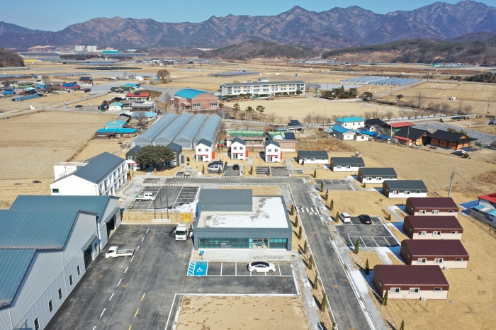 ‘행복보금자리 어울림하우스’는 농업경영 융복합 지원센터 건립사업의 일환으로, (구)보덕초등학교 부지(13,850㎡)에 총사업비 112억 5,000만 원을 투입해 귀농·귀촌 주거시설과 농업경영 지원시설을 함께 조성한 농업·주거 융복합 거점이다.