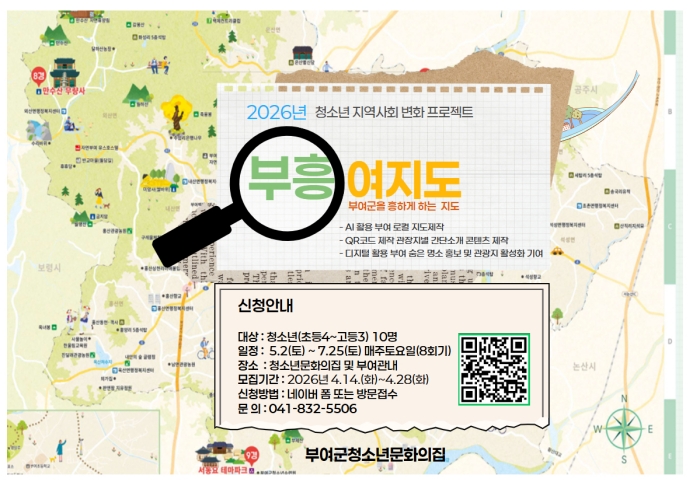 ‘부흥여지도’는 단순한 현장 탐방에 그치지 않고 디지털 기술을 접목한 것이 특징이다. 청소년들이 직접 발굴한 지역 명소와 관련 콘텐츠를 디지털 지도로 제작하고, 완성된 지도는 QR코드를 통해 누구나 쉽게 접속할 수 있도록 배포할 예정이다. 이를 통해 부여를 찾는 관광객들에게 색다른 로컬 경험을 제공하고, 지역사회 활성화에도 긍정적인 영향을 할 것으로 기대된다.